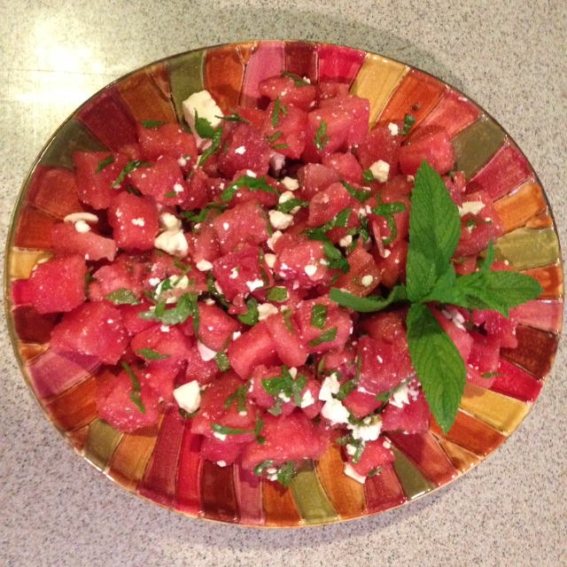 Very healthy and refreshing. I cut up chunks of fresh watermelon, added some fresh mint from my herb garden, some low fat crumbled feta, and a squirt of lime juice to brighten it up. It was delish and a big hit at the dinner table.